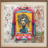 This piece features a stunning girl machina design set against a vibrant yellow background. The dynamic design is brought to life with vivid colors and intricate details. The abstract lava-like colorblock patchwork sleeves add a unique and artistic touch. Perfect for those who appreciate bold, expressive fashion.
