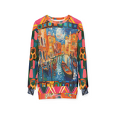 Step into a world of whimsical waterways with the 'Vacation in Venezia' unisex sweatshirt. Flaunt the fusion of flamboyant hues and serene Venetian scenery that envelops the torso. Vivid oranges, tranquil blues, and playful pinks sweep across the front and back. Each sleeve boasts a distinctive blend of abstract camouflage and classic blue bandana prints, ensuring no two are exactly alike.
