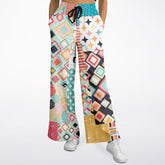 Throw it back to the golden days of Deco with a fresh twist—these Old Miami Geometric Trefoil Eco-Poly Wide Leg Pants fuse vintage South Florida flair with modern streetwear sensibilities. Bursting with retro patterns—think bold trefoils, sunburst stars, colorful tile motifs, and atomic flower clusters—this design channels the playful energy of mid-century Miami with a confident, graphic punch.