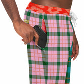 Show off your playful side with the Pink Passion Haberdashery Plaid Duo Eco-Poly Joggers, a fearless mix of classic patterns and wild details. Each leg features a different plaid—one in soft pink, the other in rich green tartan—for an eye-catching, asymmetric design. The cuffs turn up the fun with contrasting leopard prints on teal and pink backgrounds, framed by bold pink, red, and orange stripes, and finished with a pop of red animal print at the ankles. Crafted from midweight eco-poly athletic wear fabric, these joggers offer a relaxed fit with a tapered leg, elastic waistband with drawstring, and hidden side seam pockets. Equal parts cozy and avant-garde, these joggers are perfect for making a statement.