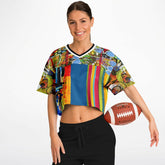 Esplanade Abstract Striped Eco-Poly V-Neck Crop Jersey