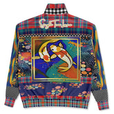 One Koi Two Koi – Best of Luck Heavyweight Oversized Quarter Zip Sweatshirt is a bold expression of fortune, balance, and perseverance brought to life through wearable art. In Asian symbolism, koi are revered for their strength and determination, with two koi together representing harmony, prosperity, and shared good luck. The artwork is presented like a framed painting, surrounded by layered plaids, graphic dots, and rich, trippy color fields that create depth and motion across the garment. Designed to be impactful from every angle, this piece blends art, symbolism, and street-forward fashion into one unmistakable statement.