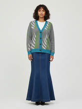 The Leaves in the Palm in Grey Knitted Cardigan brings a natural, organic touch to your wardrobe with its bold yet calming pattern. Shades of green and white palm-inspired leaves cascade across a soft grey backdrop, creating a fresh and modern aesthetic. The contrast trim in a cool teal blue highlights the button placket, cuffs, and hem, adding a refined pop of color that makes the design stand out. Its relaxed yet tailored silhouette ensures it layers beautifully, whether buttoned up as a statement piece or left open over a tee for a casual look.