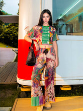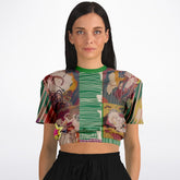 Bold, expressive, and unapologetically unique, the Live from Philadelphia Eco-Poly Short Sleeve Cropped Pullover embodies the creative pulse of a city where history, art, and fashion collide. Its patchwork design is a vibrant tapestry of abstract florals, hand-drawn scribbles, painterly textures, and bold stripes in shades of green, gold, red, and cream. Each panel tells its own story, echoing the layered energy of Philadelphia’s museums, street art, and cultural rhythm. Crafted from midweight eco-poly athletic wear fabric made with recycled fibers, it delivers breathability, wrinkle resistance, and a soft, athletic feel for all-day wear. The cropped silhouette with an elastic hem brings a flattering, modern fit that transitions seamlessly from day to night. Pair it with joggers for casual streetwear, wide-leg pants for a bold artistic look, or a sleek skirt for an elevated evening statement. Finished with the Singletree Lane logo on the back, it’s wearable art designed for every occasion.