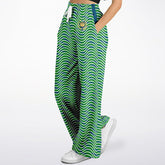 Turn every step into a style statement with the Path is Never Straight in Green Stripe Eco-Poly Wide Leg Pants, a bold celebration of movement, individuality, and unapologetic self-expression. The dynamic wave-stripe pattern in vivid green, deep navy, and crisp white flows effortlessly from waist to hem, creating an eye-catching optical effect that feels both modern and timeless. Inspired by the twists and turns of life’s journey, these pants embody the beauty of unpredictability while offering all-day comfort.