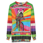Race ahead of ordinary fashion with the French Bulldog - Off to the Races Unisex Sweatshirt, where playful charm meets bold artistry. At the center, a determined French bulldog — decked out in a colorful striped outfit — speeds on a vibrant red bicycle, radiating energy and whimsy. Surrounding the pup is an explosion of rainbow rays, checkerboard accents, and dynamic stripes on the sleeves, creating a joyous, eye-catching design that’s impossible to ignore. Made for those who love to make a statement, this midweight sweatshirt combines comfort, warmth, and a whole lot of personality. Celebrate your love for dogs, bikes, and fearless self-expression in this wearable work of art.