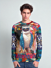 Make a bold statement with the 'Jacked Up Owl' pop art-inspired unisex sweatshirt. Featuring a dapper owl in sunglasses and a sleek blue jacket, this design combines modern pop art with a touch of whimsy. The vibrant patchwork sleeves, blending various patterns and colors, add a playful and eclectic vibe, making it a standout piece in any wardrobe. Perfect for those who love to showcase their unique style, this sweatshirt is not just about comfort but also about turning heads. Ideal for casual outings or cozy days indoors, it's a versatile addition to your fashion collection.