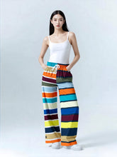 Turn heads with the California Beach Girl Rugby Stripe Eco-Poly Wide Leg Pants, a vibrant celebration of West Coast style with a playful twist. Each leg boasts its own unique horizontal rugby stripe arrangement, creating an eye-catching contrast that’s bold, artistic, and totally unforgettable. The dynamic palette—featuring teal, burnt orange, maroon, mustard, navy, cream, olive, and sky blue—evokes the carefree spirit of California boardwalks, surfside sunsets, and endless summer adventures.
