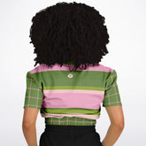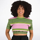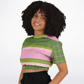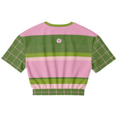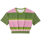 Hopscotch in Green and Pink Windowpane Eco-Poly Short Sleeve Cropped Pullover