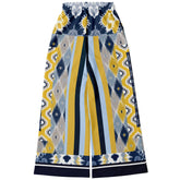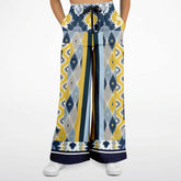 Royal Navy and Yellow Indian Batik Eco-Poly Wide Leg Joggers