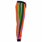 Turn every sidewalk into a runway with the Mardi Gras Rugby Stripe Eco-Poly Unisex Joggers. These bold, high-energy joggers feature wide diagonal rugby stripes in hot pink, citrus orange, lime green, and deep navy—with crisp white pinstripes in between for a punch of contrast. A classic embroidered crest on the thigh adds a collegiate touch, while navy ribbed cuffs and a drawstring waistband ground the playful palette in sporty style.