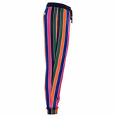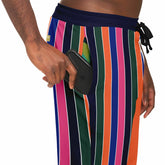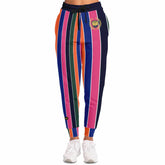 Bright, bold, and made to be seen—the Pink Cerise Rugby Stripe Eco-Poly Unisex Joggers are your go-to for high-impact streetwear with a sporty twist. Featuring an energetic lineup of vertical rugby stripes in pink cerise, deep navy, orange, kelly green, and royal blue, these joggers are a walking celebration of color. A subtle embroidered crest near the waist adds a preppy touch, nodding to vintage athletic style with modern flair.