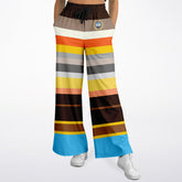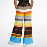 Get grounded in good vibes with the 'Earth Bound Jovial' Rugby Stripe Eco-Poly Wide Leg Pants. Featuring the same jubilant stripe pattern as the matching pullover--orange, yellow, plum, and cocoa--these pants are a standout in both style and comfort. Designed with a flattering wide-leg silhouette, they include a drawstring elastic waistband for a forgiving fit and hidden side seam pockets for convenience.