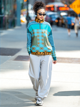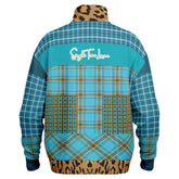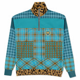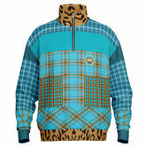 Escape into vibrant charm with the Maldives in the Background Plaid Heavyweight Quarter Zip Unisex Pullover. This bold statement piece features a mash-up of turquoise and golden plaid prints layered with leopard accents at the collar and hem for an unexpectedly luxe twist. A modern crest patch on the front adds a preppy edge, while the two patterned front pockets add visual texture and utility. The soft, heavyweight fabric provides warmth and structure, making it ideal for cooler weather and layering.