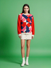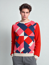 Pink Striped in Red Geo Knitted Crewneck Sweater