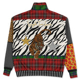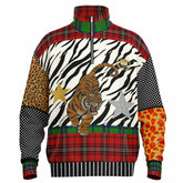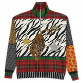 Bring the jungle to the streets with the Tartan is the New Camo in Duo Plaid Tiger Print Heavyweight Oversized Quarter Zip Sweatshirt. This statement piece fuses fearless energy with bold, eclectic style—featuring a roaring tiger bursting through zebra stripes, flanked by embroidered-looking gold and silver stars that shine with attitude. A mash-up of tartan plaid, polka dots, leopard print, and poppy florals keeps the eye wandering, making every angle a work of wearable art. The oversized fit and quarter-zip silhouette add laid-back ease, while the stand-up collar channels retro athletic vibes with a twist.