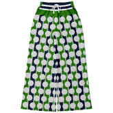 Tee off in style with the Golf - Off to the Tourney Eco-Poly Wide Leg Pants, designed for fashion-forward players and fans alike. Featuring a playful yet sophisticated pattern of oversized white golf balls lined up against vibrant green and navy stripes, these pants bring the spirit of the tournament to your everyday wardrobe. The bold design evokes lush fairways and competitive energy, making them perfect for on-the-go comfort or après-golf lounging. Crafted from midweight eco-poly athletic wear fabric, these pants are breathable, wrinkle-resistant, and easy to care for. A striped blue waistband with an adjustable drawstring ensures a comfortable fit, while hidden side seam pockets add convenience without disrupting the clean silhouette.
