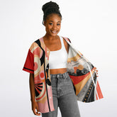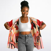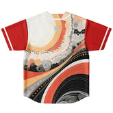 Make every outfit a double feature with the Sunset Springs Abstract 70s Eco-Poly Reversible Baseball Jersey, a dynamic blend of vintage flair and modern-day versatility. This standout piece channels groovy 70s energy with bold swirls, sunbursts, and circular abstract motifs in retro-inspired hues of peach, coral, black, and cream—all set against vibrant red sleeves for a punch of color.