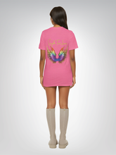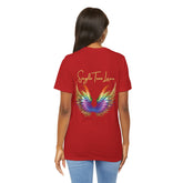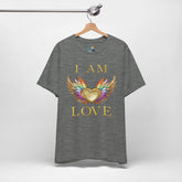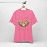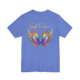 Wrap yourself in a message that radiates warmth, light, and intention with the I Am Love Angel Wings Short Sleeve Tee. This standout design features a luminous gold heart framed by iridescent rainbow wings, creating a powerful visual affirmation right at the center of your chest. On the back, the iconic SingleTree Lane script floats above a matching pair of radiant wings—an uplifting reminder of the love you carry and the love you share with the world. Whether you’re spreading good vibes, stepping into your purpose, or simply elevating your everyday look, this tee moves with you in effortless style.