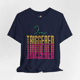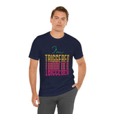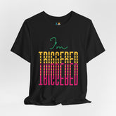 Make a bold, tongue-in-cheek statement with the I’m Triggered Reverse Print Polka Dot Short Sleeve Tee, designed for anyone who’s not afraid to laugh at life’s chaos while looking effortlessly cool. The playful mirrored typography paired with a vibrant polka-dot gradient creates a dynamic, eye-catching graphic that turns a universal feeling into unforgettable wearable art. Whether you’re poking fun at your own mood or giving the world a subtle warning, this tee delivers personality in every stitch.