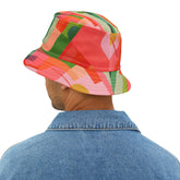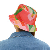 Step boldly into the future of style with the Futuristic Abstract Geo Stripe Vibrant Bucket Hat, a wearable canvas of color and imagination. Its geometric layers merge bold coral reds, soft pinks, earthy greens, and rich teals into a kaleidoscopic flow of overlapping shapes that feels alive with movement and energy. The result is a striking balance of sharp lines and fluid forms—perfect for those who want their accessories to make as much of a statement as their outfits.