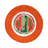 Every angle reveals something new: layered graphics reminiscent of futurist architecture, playful shapes that evoke abstract landscapes, and a vibrant palette that transforms your look into a conversation starter. With stitching in crisp white for contrast and available in three comfortable sizes, this bucket hat combines practical versatility with artistic flair.