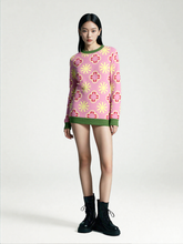 Coming Up Flowers in Pink Knitted Crewneck Sweater