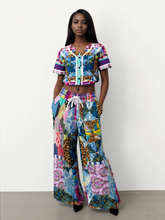 Gypsy Queen Juxtapose Purple Patchwork Quilt Eco-Poly Wide Leg Pants