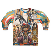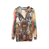 The "Lost in Time" Art Nouveau Unisex Sweatshirt is a striking fusion of surrealist imagination and architectural grandeur, inviting you into a scene where reality and fantasy intertwine. Set before the intricate façade of a grand Tartarian building, the design centers on a distinguished owl-faced gentleman in a sharp suit and bowtie, his turquoise glasses reflecting an air of intellect and curiosity. Surrounding him are vibrantly striped horses, ornate gold clocks, and whimsical ladybugs—each element a symbol of distraction, fleeting time, and moments that quietly pass us by.