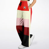 The Pink Candy Holiday Stripe Eco-Poly Wide Leg Pants are a bold blend of playful stripes and sophisticated comfort, perfect for any occasion. Featuring vibrant pink, red, purple, and cream stripes in a geometric pattern, these pants exude festive charm with a modern twist. Crafted from activewear eco-friendly polyester, they are lightweight and breathable, ideal for keeping you stylish and comfortable all day long.