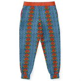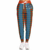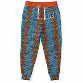 Turn up the volume on your wardrobe with the THS Salsa Denim Floral Eco-Poly Unisex Joggers—a bold fusion of retro groove and modern streetwear. These eye-catching joggers feature vertical floral stripes in a vivid mix of burnt orange and denim blue, accented with olive undertones that create a rhythmic visual pattern. The bright orange waistband and cuffs turn up the spice, while the “THS” and “That Hoody Shop” graphic near the pocket adds a collegiate twist with urban edge.