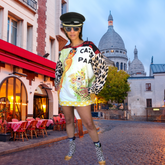 Paying homage to Josephine Baker. This item is part of our la Parisienne collection. Each unique, all-over printed sweatshirt is precision-cut and hand-sewn to achieve the best possible look and bring out the intricate design. What's more, the durable fabric with a cotton-feel face and soft brushed fleece inside brings both comfort and warmth. And, the use of multi-patterns and unique colorscaping also helps to draw in the eye and will make it an all-time favorite for years to come.Details