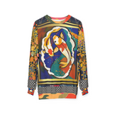 Crafted from a mid-weight 95% polyester tricot and 5% cotton blend (approximately 340 gsm), this unisex sweatshirt pairs premium comfort with art-forward sophistication. The smooth finish showcases every color and detail, while the relaxed silhouette offers easy layering and all-day wearability. Patterned sleeves and a textured hem add depth, rhythm, and visual storytelling from every angle. Whether worn for personal inspiration or as a symbol of blessings ahead, this piece brings cultural richness and expressive style into your everyday wardrobe. Carries the That Hoody Shop label on the lower left arm and inside neck label that states That Hoody Shop for SingleTree Lane.