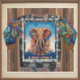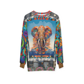 Take a walk on the wild side with the 'Elephant on Psychedelics' unisex sweatshirt. This bold piece features an intricately designed psychedelic elephant, radiating vibrant hues of orange, blue, and pink against a sky bursting with swirling clouds. The sleeves are a colorful patchwork of floral and paisley patterns, adding an extra layer of artistic flair. Denim-inspired accents and leopard-print cuffs bring a mix of urban edge and earthy vibe to this statement top.
