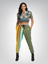 Crafted from midweight eco-poly athletic wear fabric, this cropped pullover is lightweight, breathable, quick-drying, and easy to wear across seasons. The short sleeves and relaxed cropped fit make it ideal for pairing with high-rise jeans, skirts, or coordinating joggers. Designed to be styled solo or layered under the matching cardigan, this piece balances artistic impact with everyday comfort. Bold, playful, and unmistakably wearable art, it’s made to stand out without trying too hard.