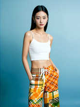 Orange Extrapolation Harvest Plaid Patchwork Eco-Poly Wide Leg Pants