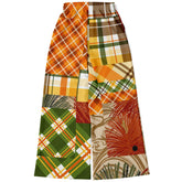 Celebrate fall’s most radiant tones with the Orange Extrapolation Harvest Plaid Patchwork Eco-Poly Wide Leg Pants. This eye-catching design features a harmonious blend of harvest-inspired patchworks—burnt orange, sunflower yellow, moss green, wheat tan, and ivory—woven into a dynamic mix of plaid, tartan, and abstract nature prints. The juxtaposition of bold crisscrossing lines with organic swirls and landscape-inspired motifs evokes the richness of autumn landscapes and vintage quilt artistry.