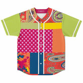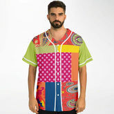 Turn up the heat with the Chili Pepper Patchwork Eco-Poly Unisex Button Front Jersey! This bold, artistic top blends playful patterns and fiery colors—think spicy red florals, pink polka dots, electric lime green, and pops of gold, navy, and abstract flame motifs. Each panel delivers a visual jolt, making this piece feel like wearable energy.