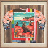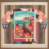 I Love You California - Pigeon Point" Sea Lions Unisex Sweatshirt is a nostalgic tribute to the Golden State's breathtaking coastline. Featuring a vintage-inspired illustration of sea lions basking on the rocky shores of Northern California near Pigeon Point Lighthouse, this sweatshirt evokes the magic of coastal wildlife and scenic beauty. The bold patchwork sleeves blend vibrant patterns, florals, and geometric prints, adding a playful twist to the classic postcard-style design.