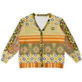 Warm, expressive, and effortlessly bold, the Sunshine of My Life Heavyweight Unisex Cardigan is designed as a statement layer that feels just as good as it looks. A rich patchwork of golden yellows, soft olives, warm oranges, and retro-inspired motifs creates visual rhythm while staying grounded and wearable. This is maximalism done thoughtfully—balanced, intentional, and full of joy.