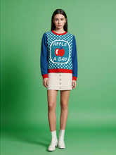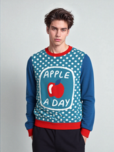 Fresh, fun, and packed with personality, the Apple A Day Knitted Crewneck Sweater is a delightful reminder that a little whimsy goes a long way. The star of the design is a bold, bright red apple—framed by the charming phrase “Apple A Day.” Set against a retro-inspired teal background dotted with crisp white polka dots, this sweater instantly lifts your mood and your outfit.