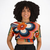 Down Memory Lane Groovy 70s Print Eco-Poly Short Sleeve Cropped Pullover