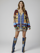Radiating color and cultural fusion, the Open Window in Provence Patchwork Heavyweight Unisex Cardigan captures the warmth and vibrancy of southern France in a playful mix of patterns and textures. This variation in the collection brings together painterly brushstrokes, graffiti-style abstracts, and geometric grids in sun-washed hues of orange, blue, lavender, and gold. The bold plaid framing and striped trim evoke a sense of structure within the expressive chaos, while the back showcases the iconic 86—a symbol of renewal, representing the idea of clearing the past and embracing a fresh start. Each panel feels like a window into a different creative world, unified by an artistic sense of harmony and motion.