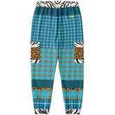 Let your style drift into island time with the Maldives in the Background Blue Plaid Eco-Poly Unisex Cargo Joggers. These joggers serve up coastal cool with a bold patchwork of turquoise and aqua plaid layered against deep sea blues, punctuated by playful pops of zebra and leopard print on the cargo pockets and cuffs. The contrast waistband and cuffs add a modern twist, creating the perfect harmony of wild and refined.
