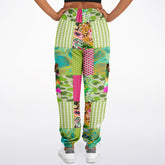 Make a fearless fashion statement with the Pink Cerise Plaid Paisley Eco-Poly Cargo Joggers, where wild meets whimsical in the most unexpected way. This kaleidoscopic design features an electrifying patchwork of bold paisleys, green gingham, cerise stripes, retro swirls, neon scales, and abstract camo—each square pulsing with personality. Splashes of leopard print and colorful animal patterns add a fierce edge, while soft polka dots and playful tie-dye tones balance the look with a fun, vintage twist.