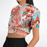 Coral Springs Hippie Patchwork Eco-Poly Short Sleeve Cropped Pullover