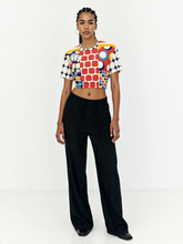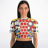 Primary Skool Geo Print Eco-Poly Short Sleeve Cropped Pullover