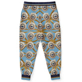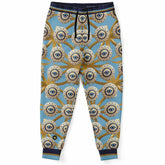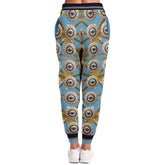 Step into celestial protection with the Evil Eye Protection in Powder Blue Eco-Poly Unisex Joggers. Featuring a stunning all-over print of traditional evil eye symbols radiating from golden spokes, these joggers are designed to deflect negativity while elevating your look. The soft powder blue backdrop creates a dreamy contrast against the intricate ivory, cobalt, and gold detailing—adding a pop of visual intrigue with spiritual significance.
