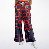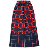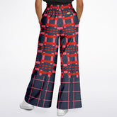 Navy and Coral Square Olympia Plaid Eco-Poly Wide Leg Pants