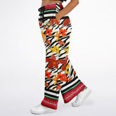 Transport yourself to the spice markets and coastal gardens of Morocco with the Meet Me in Tangiers in Floral Stripe Eco-Poly Wide Leg Pants. A bold mix of sunlit florals in saffron, red, and gold bloom across a zebra-striped backdrop, creating a stunning visual contrast that’s both exotic and sophisticated. Vibrant bands of crimson, jade, and black striping accent the waistband and hem, while the SingleTree Lane crest on the front left hip adds a distinguished touch of heritage. Every detail—from the watercolor-style blossoms to the rhythmic stripe accents—captures the free-spirited elegance of a Tangiers sunset.